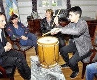 El joven realizó la visita acompañado por su profesora de danzas y bombos, Sonia Corio, y su madre, Ana Rodríguez. En tanto que, el Intendente lo recibió junto a la directora de Cultura, Rosa Scacciante.
