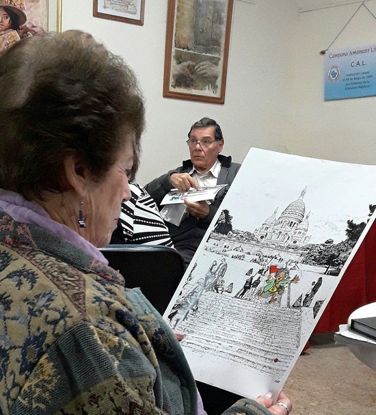 El reconocido humorista gráfico Norberto Lombardi (Campana, 1939) estuvo el martes pasado en Campana Amanecer Literario para celebrar los 22 años del nacimiento de la entidad. Allí compartió algunos de los trabajos de su muestra "RECO-RIENDO París", que del 5 al 29 de abril expuso en la Alianza Francesa de Buenos Aires.