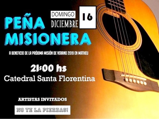 16 de diciembre - 21 hs. ¡Se viene la Peña misionera!!! Los misioneros te esperamos Para compartir con nosotros música, baile, comida, diversión y mucho más...