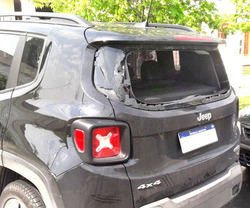 Su dueño, escuchó una explosión y luego la alarma. Cuando salió a la vereda, tomó nota de que le habían roto la luneta trasera.