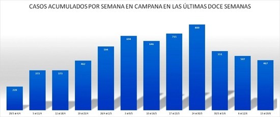 CAMPANA PROMEDIO 66,7 CASOS POR DÍA EN LA SEMANA QUE SE CERRÓ HOY.