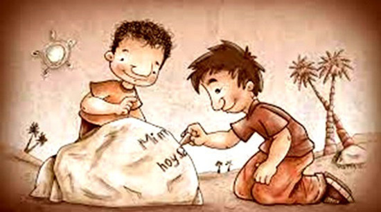 El otro, ofendido, sin nada que decir, escribió en la arena: "hoy, mi mejor amigo me pegó una bofetada en el rostro".
