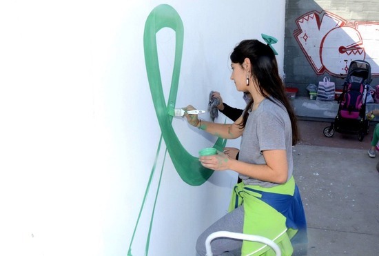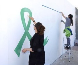 En el lugar, se pintó un lazo verde, símbolo distintivo para concientizar sobre la fecha en cuestión. El verde representa el nacimiento, y se asocia comúnmente a la nueva y vibrante vida, el crecimiento de las plantas y flores durante los meses de primavera.