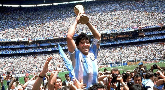 Por otra parte, en la Selección, se consagró campeón del mundo en el recordado Mundial México 1986; en el mismo, Argentina se enfrentó a Inglaterra en los cuartos de final en un partido histórico en el que Maradona paralizó el marcador en el 2-1 con el "Gol del Siglo" y "La Mano de Dios": "Era como ganarle a un país, más que a un equipo. Aunque no tenía nada que ver con esa guerra, sabíamos que a muchos argentinos los habían matado allá como pajaritos. Y esto era una revancha". Más adelante, en el año 1990, salió subcampeón en el Mundial disputado en Italia.