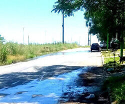 "Verdín que se forma en el agua que cruza la calle es muy peligroso, desde Hernández a Mármol por calle Las Heras en las Acacias. Espero una solución" escribe Graciela.