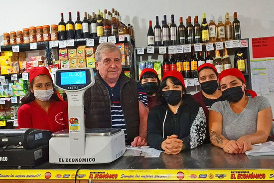 Roberto Monges y sus colaboradoras del autoservicio de Maipú al 400.