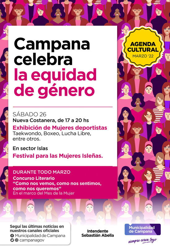 El evento se llevará adelante de 17 a 20 en la Nueva Costanera, en el marco de la agenda cultural de marzo "Campana celebra la equidad de género".