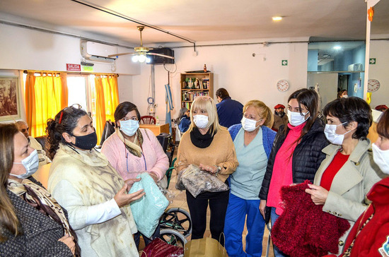 Los alumnos del Curso de Telar y Tinte, que dicta Andrea Burgueño, donaron 36 abrigos confeccionados por ellos especialmente para los adultos mayores que residen en el lugar.