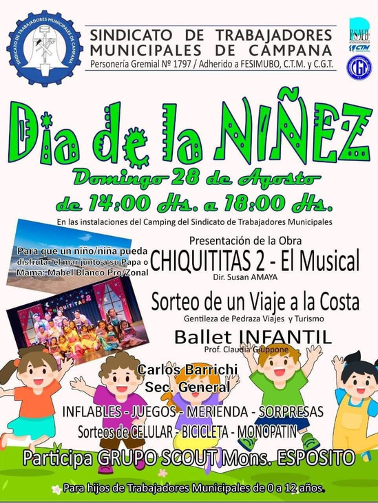 Este domingo, desde las 14.00 horas, el Sindicato de Trabajadores Municipales de Campana llevará adelante su celebración por el Día de la Niñez en las instalaciones de su camping ubicado en el barrio Las Acacias.
