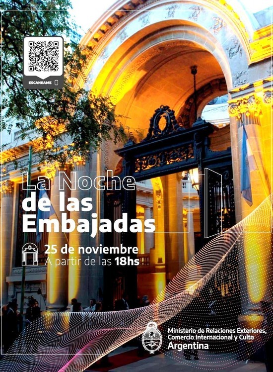 Algunas actividades de las embajadas requieren inscripción previa, para más información visitar el sitio web https://cancilleria.gob.ar/la-noche-de-las-embajadas.