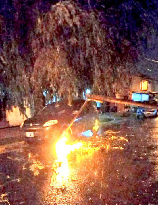 La fuerte tormenta desatada ayer alrededor de las 19 hs. provocó muchísimos inconvenientes por caída de postes con tendido eléctrico y árboles.
