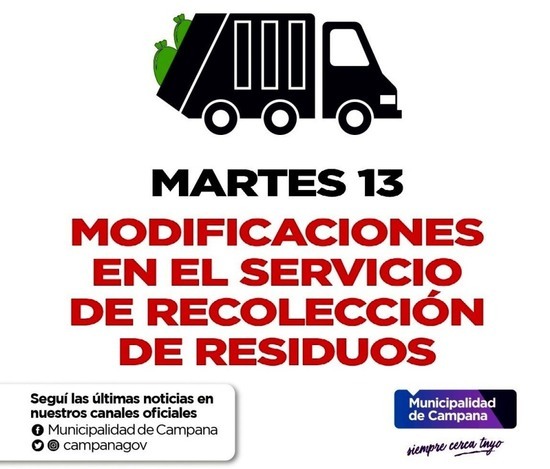 Desde el Municipio informaron que la recolección vespertina se adelanta a las 11. El servicio de barrido será normal.