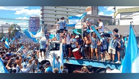 La plaza Eduardo Costa y la avenida Rocca se llenaron de hinchas de la Selección Argentina eufóricos por el tricampeonato obtenido en Qatar, en una concentración de personas inédita para la ciudad. Los festejos continúan hoy en todo el país.
