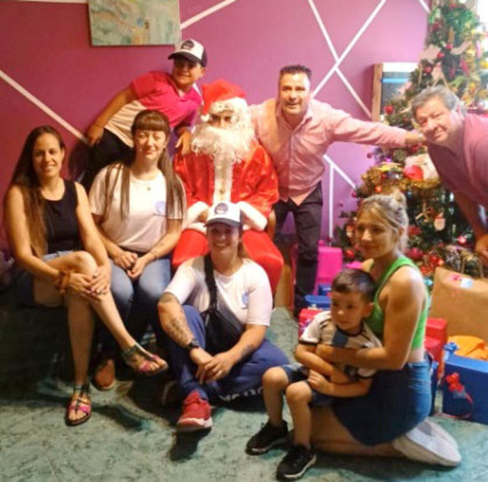 Mientras compartían una merienda, todos los regalos (cada uno con su nombre) estaban colocados bajo el arbolito de Navidad, con Papá Noel sentado junto a él que los esperaba llamando en voz alta por sus nombres, para entregar a cada uno su regalo y su bolsitas con golosinas. Incluso los niños recién llegados recibieron su regalo ya que Papá Noel (Fabio Burgos) había recibido la ayuda de una de las colaboradoras del Hogar que es parte de la Agrupación Melo y que junto con Marina Noelia Gutiérrez, Ana Abrego, María José Benedetich, Solange González y Carly Quiroga, participaron de la visita.