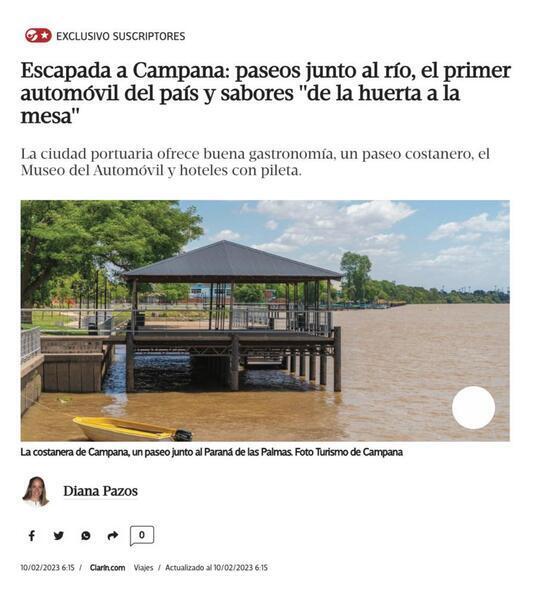 “Todo esto y mucho más se concentra en Campana, una ciudad portuaria e industrial ubicada a solo 75 kilómetros de Buenos Aires", afirma el texto firmado por Diana Pazos, periodista especializada en Viajes.