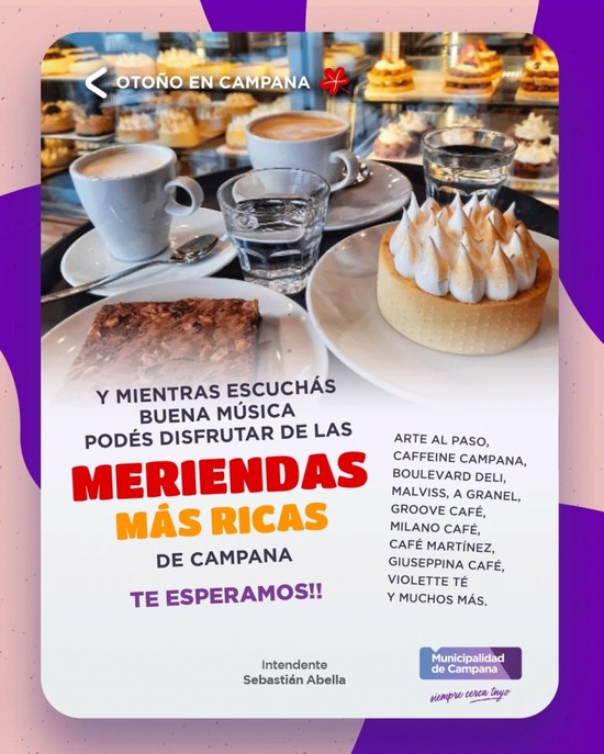 Como parte de esta propuesta otoñal, los vecinos además podrán disfrutar de las mejores meriendas de la ciudad. Giusseppina Coffee & Brunch, Eugenia Arte al Paso, Caffeine, Boulevard Deli, Groove Café, A Granel, Milano Centrale, Violette Te (Malviss Gluten Free), Café Martínez y muchas otras cafeterías acompañarán la tarde de sábado, que, con estas destacadas propuestas artísticas, promete ser de las mejores de la temporada de otoño.