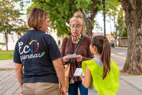 La actividad se desarrolló en la plaza Eduardo Costa, donde se hizo presente personal del área de Desarrollo Sostenible y referentes de la cooperativa para llevar adelante esta acción apuntada a difundir el trabajo que se viene realizando en conjunto en favor del reciclaje, con el objetivo de que cada vez más vecinos se sumen a la separación de residuos.