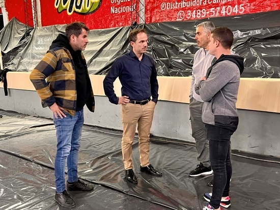 El jefe comunal estuvo recorriendo los trabajos que se realizan en la entidad junto a Fabián Sosa y Nicolás Mazzeo, organizadores del Torneo Intercolegial de Baby Fútbol, quienes le agradecieron el aporte y apoyo constante.
